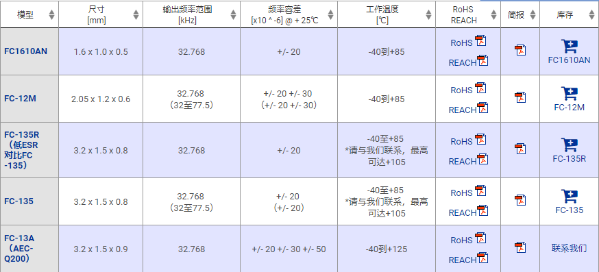 Quartz Crystal石英晶振選型列表