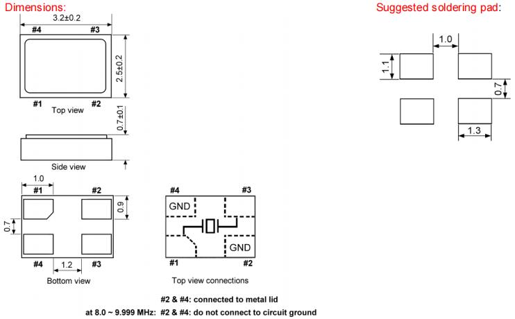 | aging at +25°℃ (first year) max. | ±2 ppm |