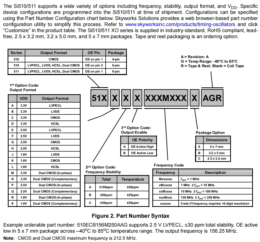 | 511ABA106M250BAG | Skyworks Solutions Inc. | Si511 | 106.25 MHz | LVPECL | 3.3V |