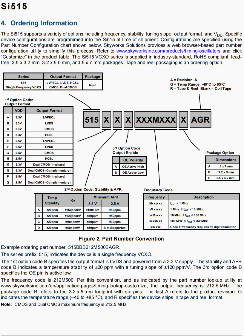 | 515CDA51M2000BAGR | Skyworks晶振 | Si515 | VCXO | 51.2 MHz | CMOS | 3.3V |