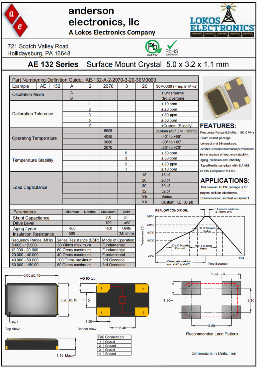 AE-132-A-1-4085-2-10-25M0000|AE132|25M|安德森,美國安德森晶振公司,Anderson晶振,AE-132晶振,AE-132-A-1-4085-2-10-25M0000晶振,5032晶振,高精度晶振,無源晶振,高品質(zhì)晶振,美國晶振,進(jìn)口晶振,低損耗晶振,高質(zhì)量晶振,通訊設(shè)備晶振,路由器晶振,石英晶振,貼片晶振,產(chǎn)品具有高精度超小型的表面貼片型石英晶體振蕩器,最適用于移動(dòng)通信終端的基準(zhǔn)時(shí)鐘等移動(dòng)通信領(lǐng)域.比如智能手機(jī),無線通信,衛(wèi)星導(dǎo)航,平臺(tái)基站等較高端的數(shù)碼產(chǎn)品,晶振本身小型,薄型具備各類移動(dòng)通信的基準(zhǔn)時(shí)鐘源用頻率,貼片晶振具有優(yōu)良的電氣特性,耐環(huán)境性能適用于移動(dòng)通信領(lǐng)域,滿足無鉛焊接的高溫回流溫度曲線要求,符合RoHS/無鉛。