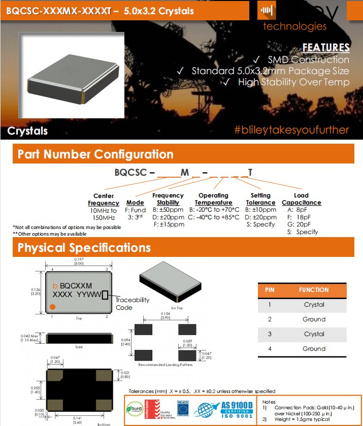 進(jìn)口高品質(zhì)Bliley晶振,BQCSC-38.400M3-FCBFT環(huán)保晶振,6G信號放大器晶振