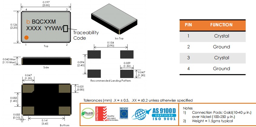 - 晶振尺寸:5.0*3.2*1.2mm