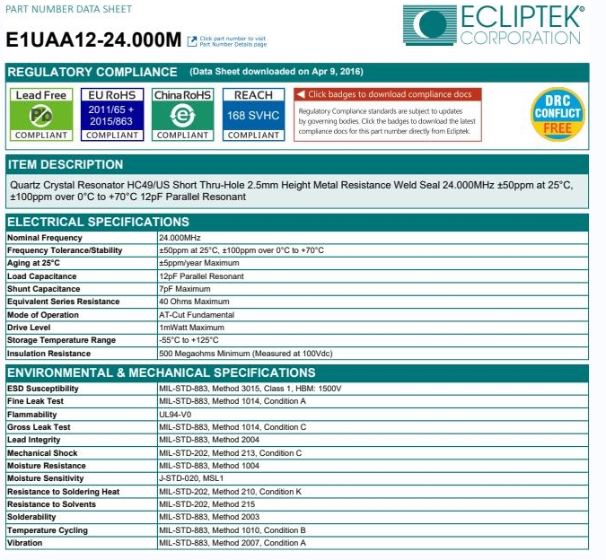 E1UAA12-24.000M|石英晶振|ECLIPTEK晶振