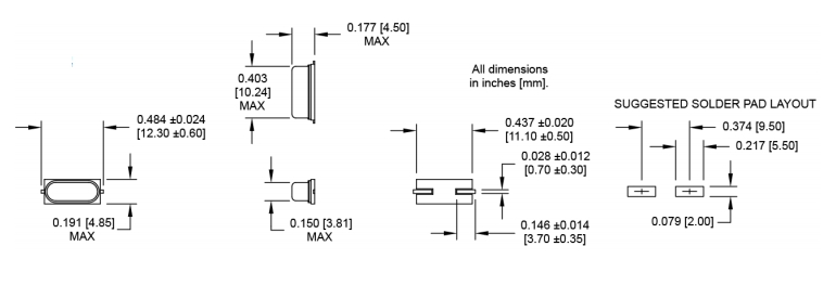 | 尺寸 | 2-Pin HC-49/US |