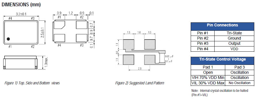 - 晶振尺寸:3.2*2.5*1.0mm