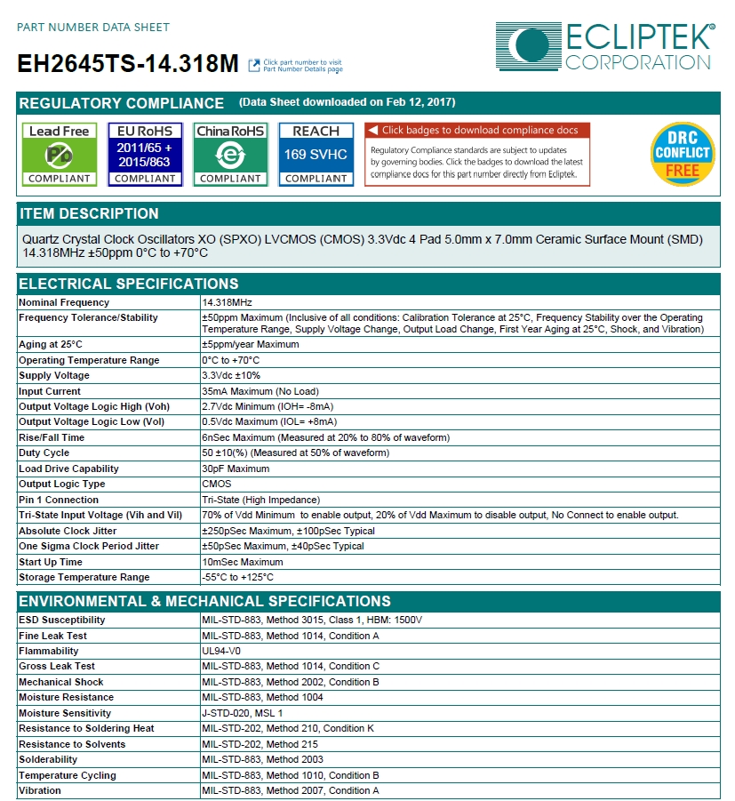 | 物料編碼 | EH2645TS-14.318M |