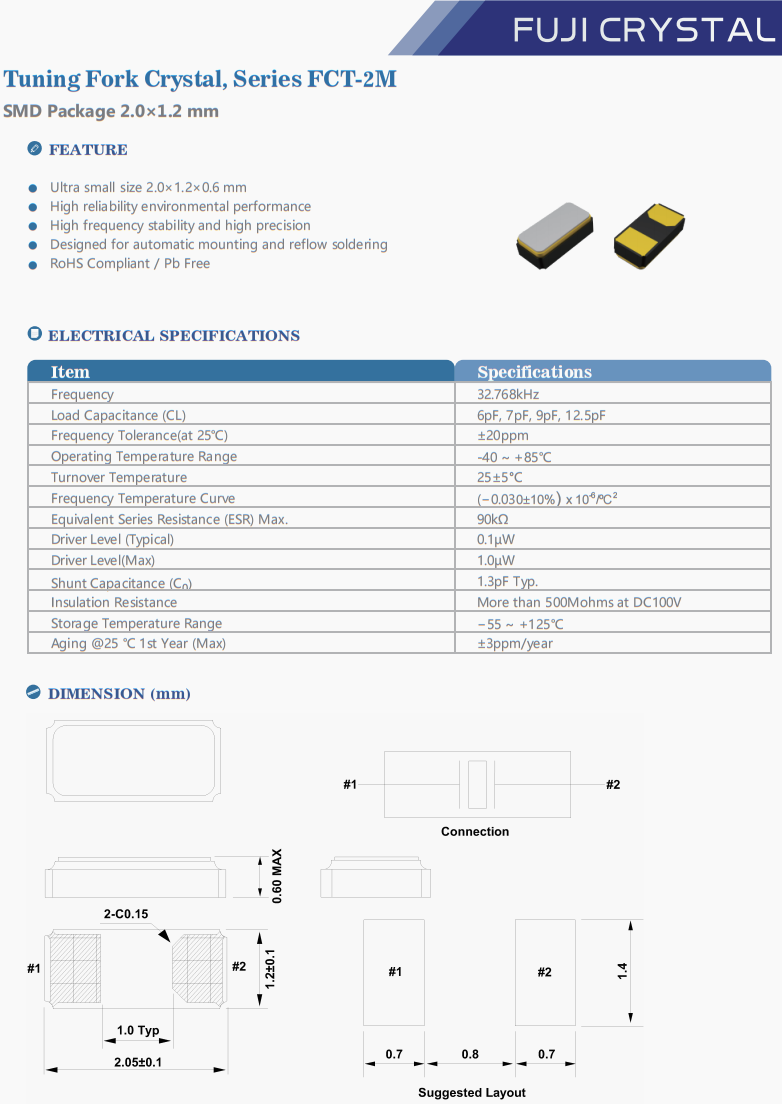 | FCT2M032768C5I5 | Fuji晶振 | FCT-2M | 32.768 kHz | - | - | 12.5pF |