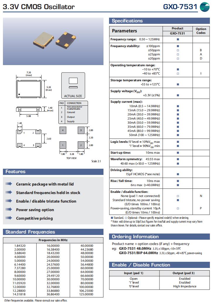 GXO-7531/DIP 25.0MHz|Golledge Crystal規(guī)格表