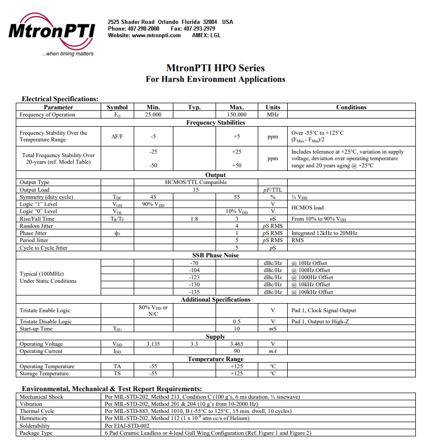 | HPO-311 25.000000 | HPO | ±5 ppm | 25 | 5.0 x 7.0 mm | -55°C to +125°C | 3.3 |