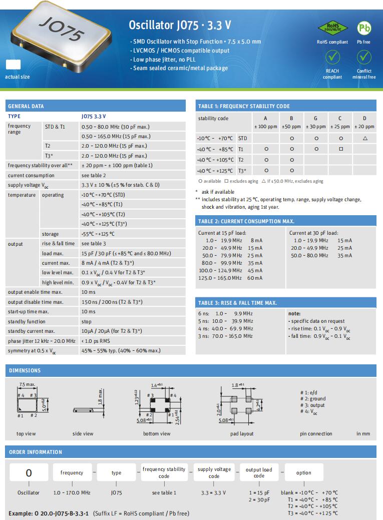Jauch Crystal|O 33.3-JO75-B-3.3-1-T2-LF尺寸圖