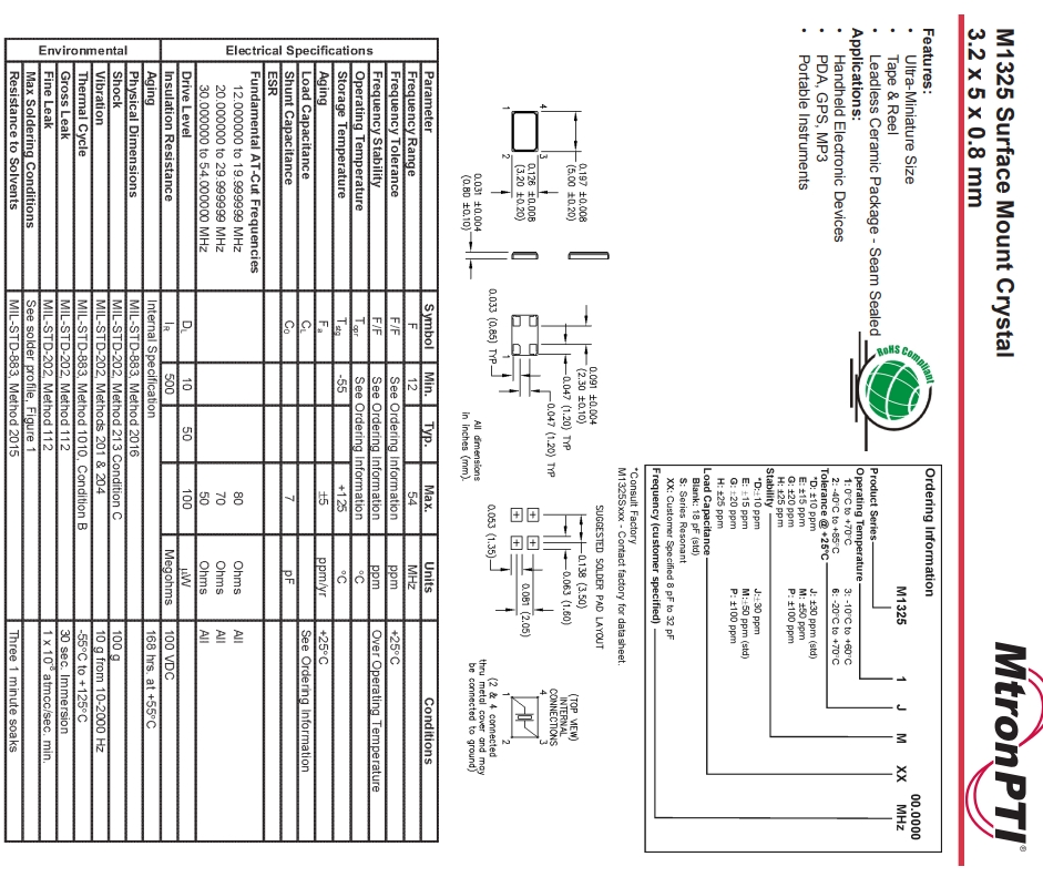 | MTRONPTI晶振規(guī)格 | 單位 | M1325晶振 | 石英晶振基本條件 |