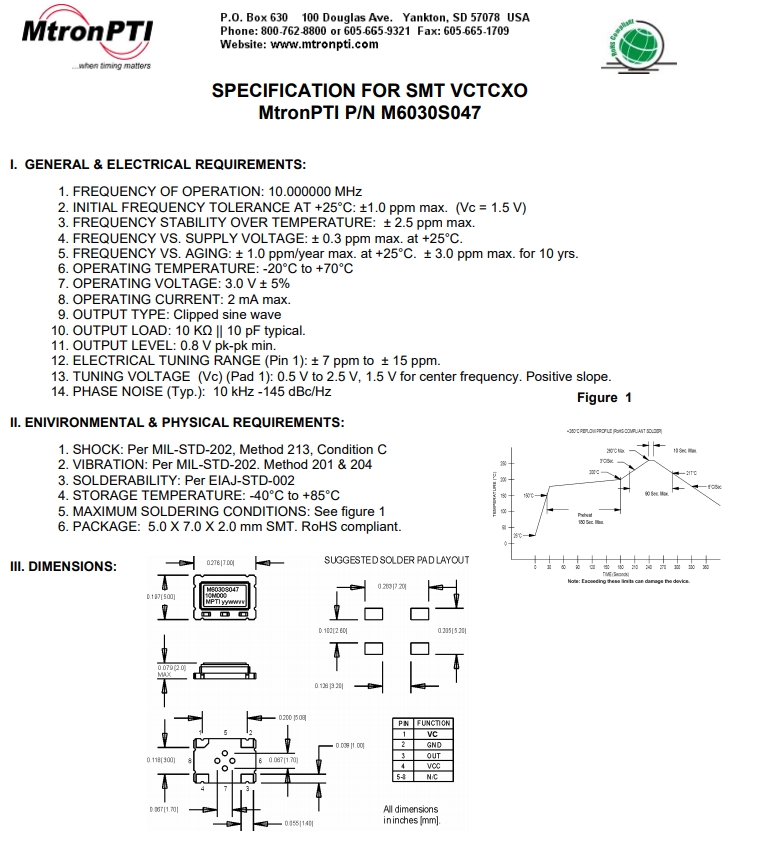 M6030S047 10.000000|M630x|MTRONPTI晶振 ,MTRONPTI晶振, 型號(hào)M630x ,編碼M6030S047 10,精度±2.5PPM,頻率10MHZ,電壓3.0V,輸出Clipped Sinewave,尺寸7050mm,石英晶體振蕩器,石英晶振,有源晶體振蕩器,VC-TCXO振蕩器,工作溫度范圍:-20°C-75°C,四腳貼片晶振,特點(diǎn):低相噪,低衰減,低電源電壓,低功耗,低差損,可以廣泛應(yīng)用在汽車(chē)導(dǎo)航,GPS導(dǎo)航,輪船導(dǎo)航,飛機(jī)導(dǎo)航,汽車(chē)?yán)走_(dá),飛機(jī)雷達(dá),探測(cè)器,掃描機(jī),無(wú)人售貨機(jī)等.