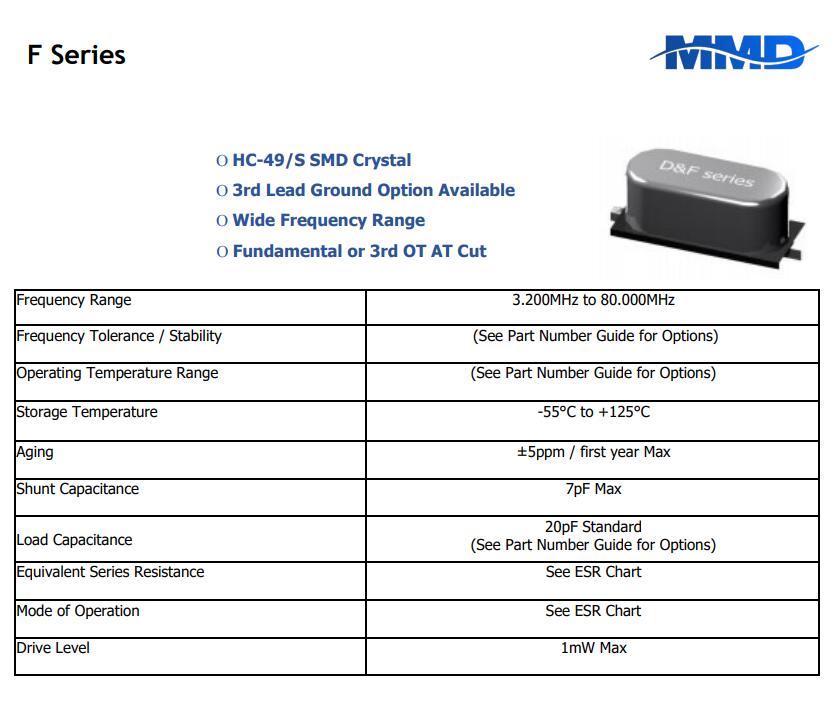 MMDCOMP麥迪康晶振,FF18BC1-24.576MHZ-T,6G相關設備晶振,歐美進口晶振,MMDCOMP麥迪康晶振,F石英晶振,無源晶振,HC-49/S SMD晶振,FF18BC1-24.576MHZ-T晶振,頻率24.576MHz,負載18pF,頻率公差30ppm,工作溫度-40~85°C,無鉛環(huán)保晶振,耐高溫晶振,6G相關設備晶振,室內路由器晶振,網(wǎng)絡終端晶振,微處理器晶振.