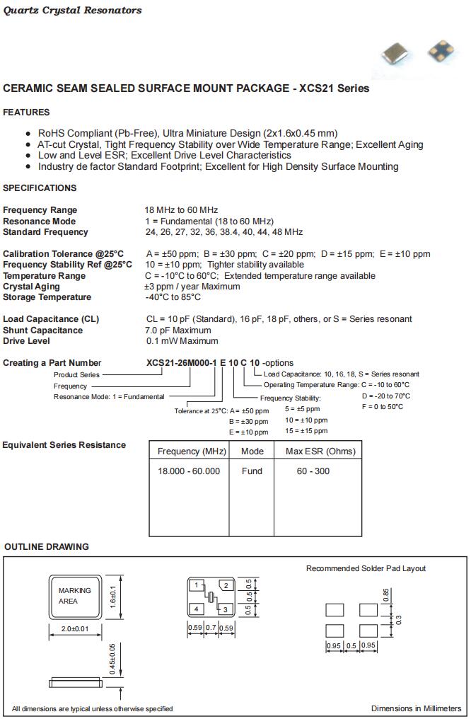 XCS21-44M000-1E10D16|44MHz|16pF|富通無(wú)源晶振,歐美進(jìn)口晶振,富通晶振,XCS21無(wú)源晶振,石英諧振器,XCS21-44M000-1E10D16晶振,2016mm晶振,SMD晶體,石英晶振,四腳貼片晶振,頻率44MHz,負(fù)載16pF,頻率容差10ppm,工作溫度-20~70°C,高穩(wěn)定性晶振,低老化晶振,優(yōu)異的驅(qū)動(dòng)電平特性,便攜式設(shè)備晶振,智能手機(jī)晶振,平板電腦晶振,無(wú)線局域網(wǎng)晶振.