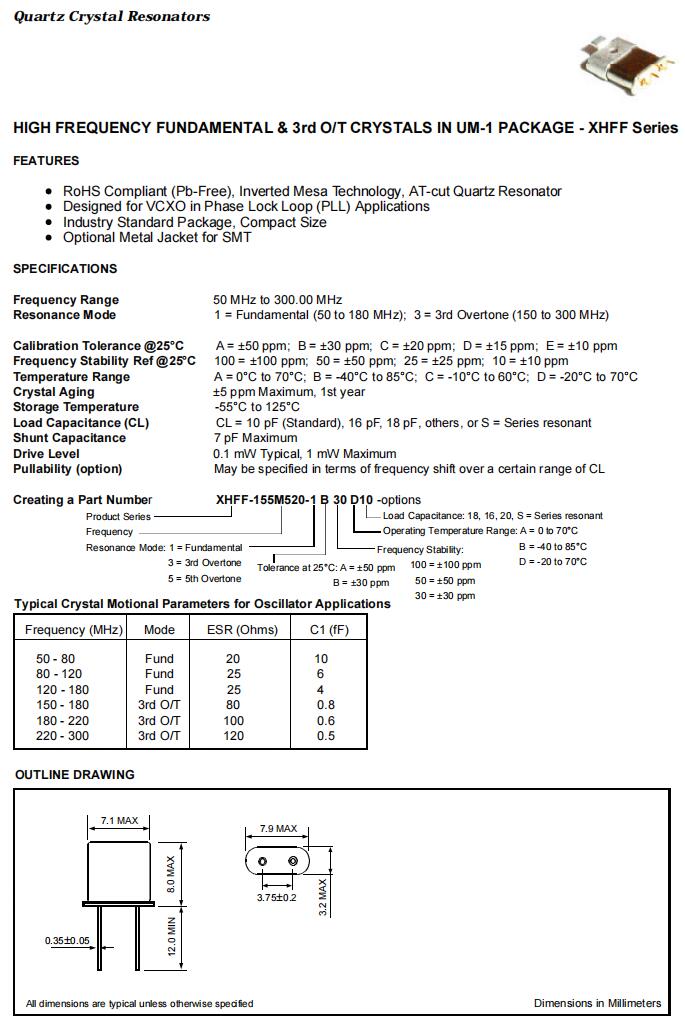 XHFF-155M520-1B30D10|155.52MHz|10pF|Fortiming Crystal規(guī)格表