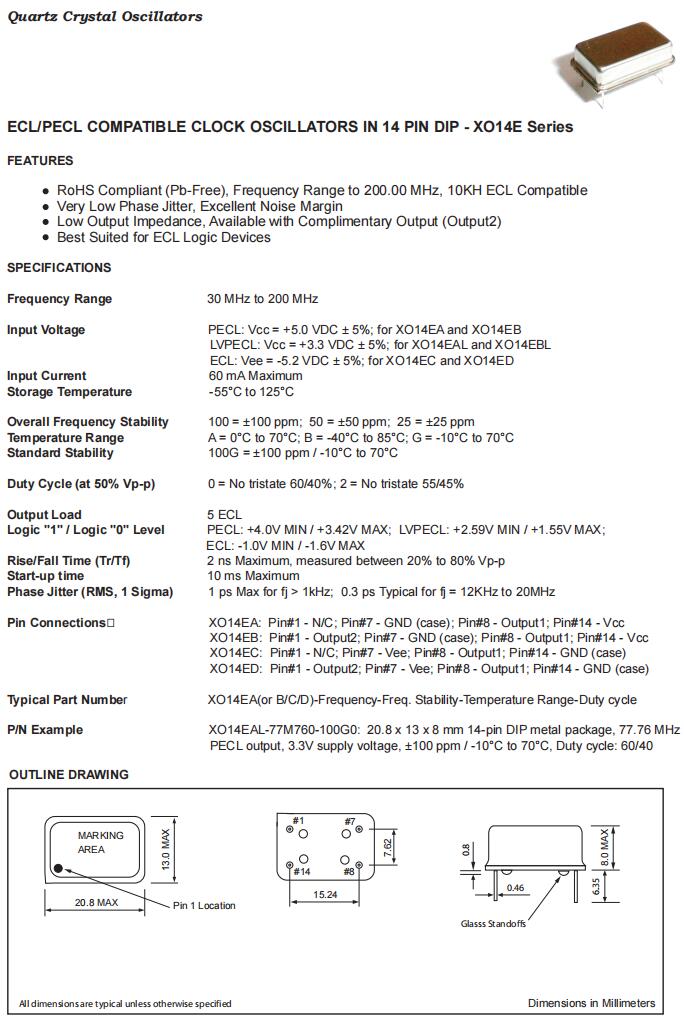 -符合RoHS標(biāo)準(zhǔn)(無鉛),頻率范圍至200.00 MHz, 10KH ECL兼容