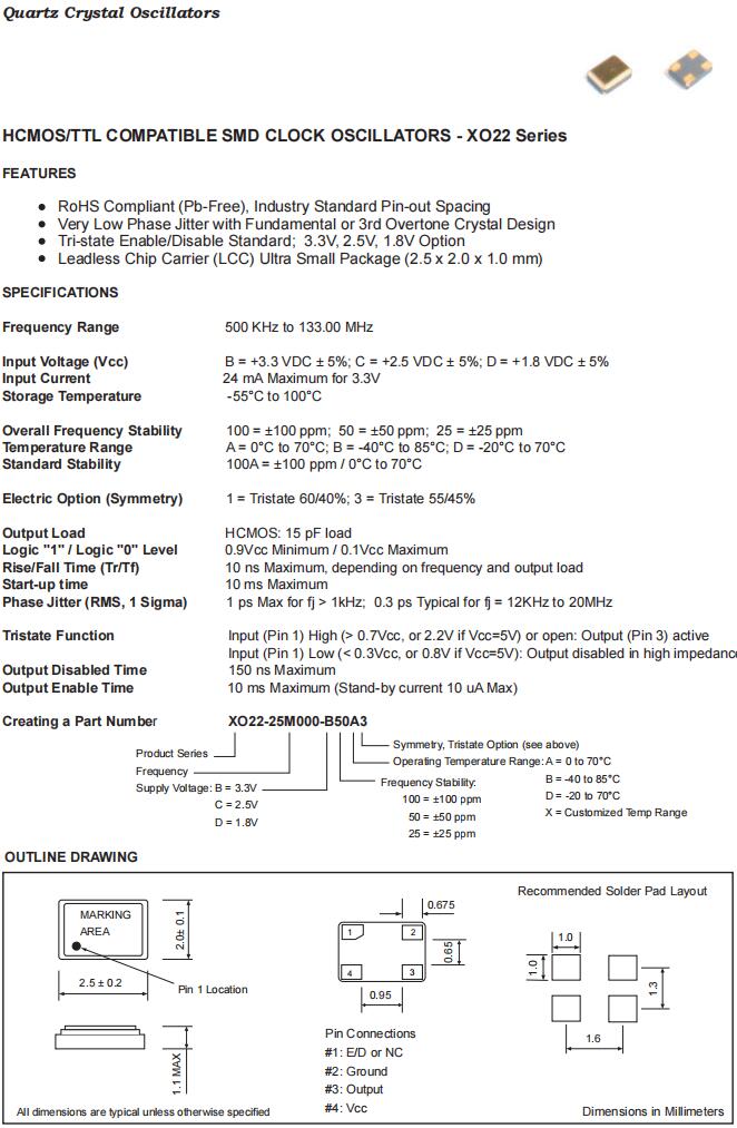 XO22-27M120-C50B3|27.12MHz|2.5V|Fortiming超小型晶振規(guī)格表