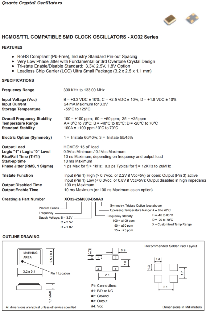 XO32-24M000-B25B3|24MHz|3.3V|Fortiming Crystal尺寸圖