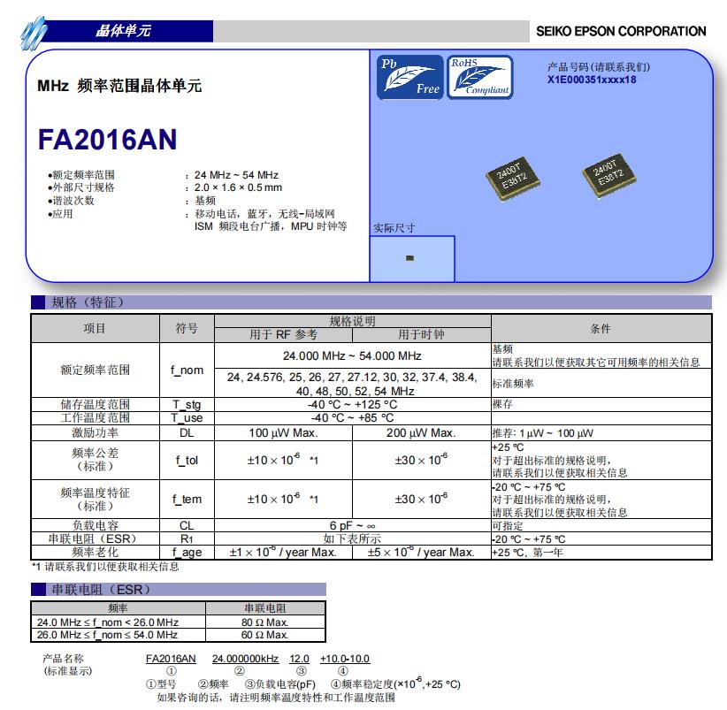 FA2016AN-X1E0003510024-38.4MHZ-8pF-MPU時鐘,尺寸為2016mm,頻率為38.4MHZ,頻率穩(wěn)定度為10ppm,負(fù)載電容8pF,工作溫度-20°C~75°C,日本愛普生晶振,進(jìn)口晶振,無源貼片晶振,石英晶體,水晶振動子,石英晶體諧振器,音叉晶體,2016mm無源晶振,進(jìn)口無源晶振,SMD晶振,低損耗晶振,高品質(zhì)晶振,38.4MHZ晶振,移動電話專用晶振,藍(lán)牙晶振,無線設(shè)備晶振,MPU時鐘晶振,儀器儀器晶振,數(shù)碼電子晶振,X1E0003510025石英晶振,X1E0003510019貼片晶振。