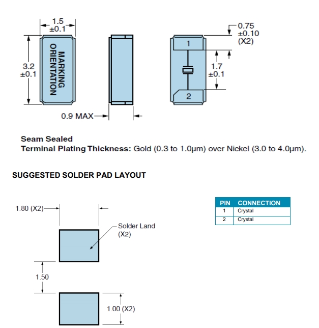 | EA1620JA12-20.000M | 表面貼裝晶體諧振器 | Crystal Resonator 20MHz ±15ppm (Tol) ±30ppm (Stability) 12pF FUND 120Ohm 4-Pin CSMD Bulk | -40~85 |