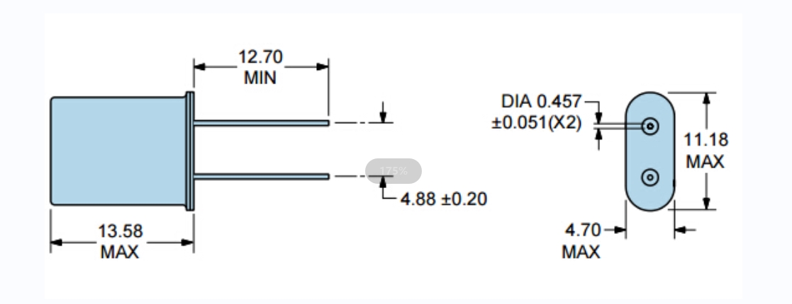 | 尺寸 | 2-Pin HC-49/U |