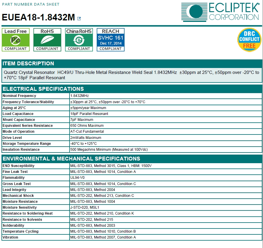 EUEA18-1.8432M|1.8432MHz|無源晶振