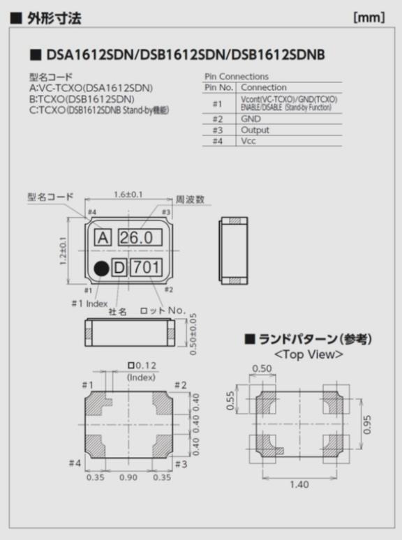 KDS晶振,DSA1612SDN晶振,有源晶振,1612mm晶振,頻率范圍19.2MHz/26MHz/38.4MHz/40MHz/52MHz,厚度1.6*1.2*0.55mm,應用于移動通信設備.