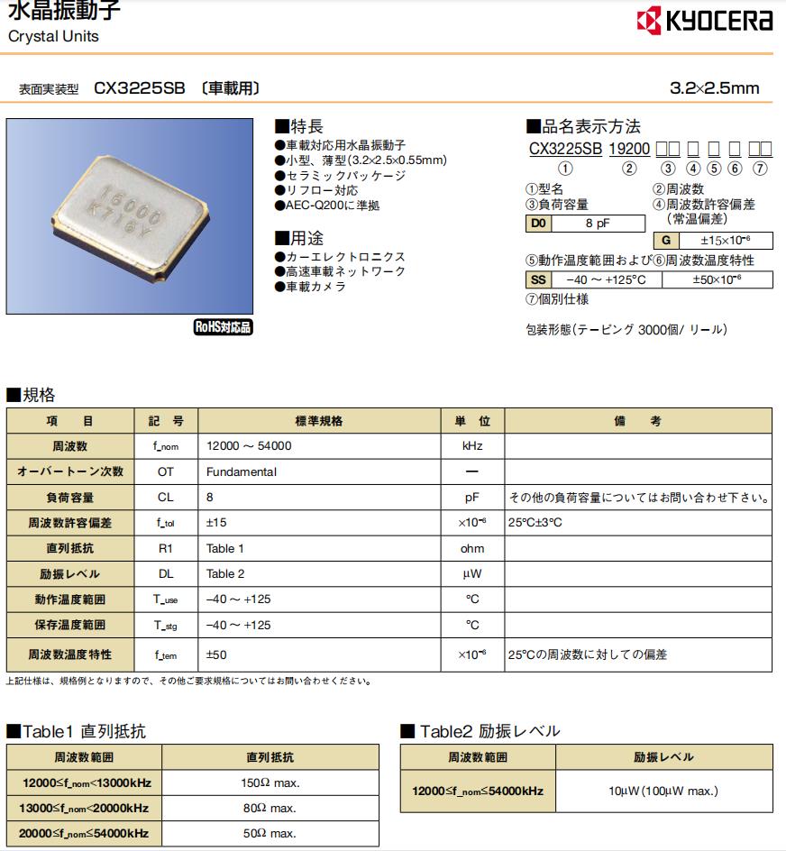 CX3225SB12000H0FLJCC,12MHZ,Kyocer,車(chē)載攝像機(jī),SMD 參數(shù)表