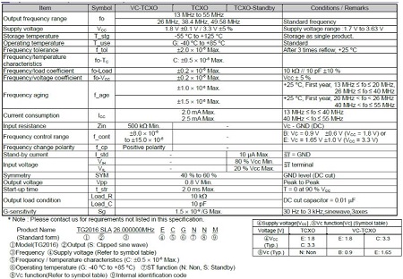 該TCXO有源晶振系列參數(shù)規(guī)格圖如下: