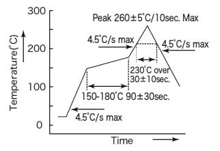 | 8 | 焊料耐熱性試驗 | 回流三次,180±10°C 90±30秒,峰值溫度260±5°C(最長10秒),(230°C至30±10秒) | * 1 |