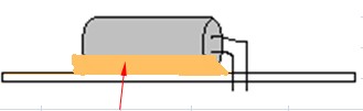 圖四 扁平狀晶振底部要緊貼線路板面