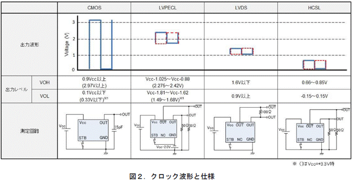 以下的差分晶振即使受到GND噪聲的影響,在輸出的末端被取消時(shí),作為沒有噪聲的信號(hào)所展示的樣子,以及單輸出振蕩器受到噪聲影響的樣子. 這樣,通過使用差分晶振,可以防止噪聲的影響.