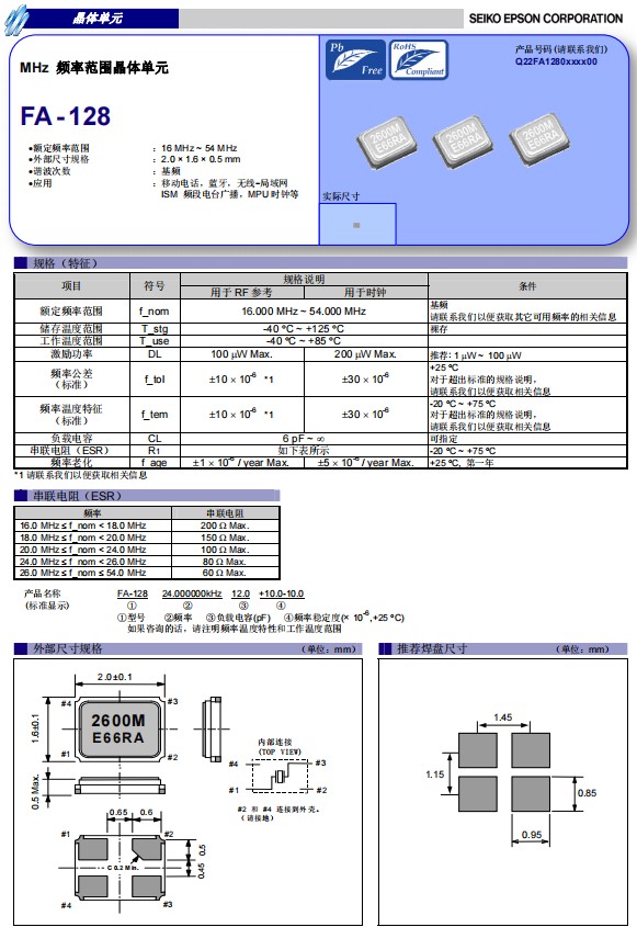 FA-128超小型晶振Q22FA1280014800特別適用于智能家居應(yīng)用