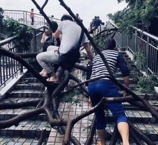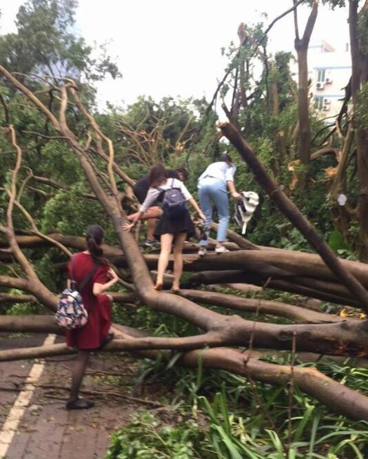 臺(tái)風(fēng)過后的晚上都在不停的清理道路,晚上接到通知的上班族們心都涼了半截.一大早起來上班,天吶,就好像是進(jìn)入了原始森林,到處都是樹木,還是那種被吹斷了的.人行道,公交站臺(tái),道路路口,天橋路口全都堵滿了密密麻麻的樹支.這讓上班族們到處找空洞往里頭鉆.今天早上來上班的時(shí)候,有個(gè)同事居然還問我公司在哪,找不到公司的入口了.(當(dāng)時(shí)我忍住了沒笑出聲,直接跟同事說在那堆樹支里找個(gè)空洞鉆過去就能看到了)