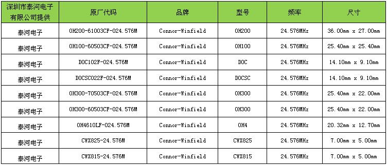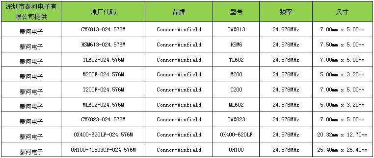 康納溫菲爾德晶振低頻CWX825-24.576M晶振編碼料號(hào)對(duì)應(yīng)表