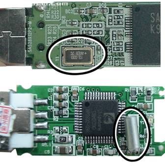 上面的結(jié)構(gòu)圖是拆開(kāi)了我們的閃存器,可以很明顯的看到兩者用到的晶振不同,前面的主板用到的晶振是高質(zhì)量,高穩(wěn)定性的貼片晶振,直接采用高端的自動(dòng)貼片機(jī)貼片就可以替代手工焊接這道工序。這種技術(shù)可以提供提高可靠性,加強(qiáng)抗震能力,抗干擾。下面的采用了市場(chǎng)上最為普遍常見(jiàn)的圓柱晶振,這種圓柱晶振需要手工焊接,有時(shí)候,圓柱晶振兩腳之間的間距無(wú)法達(dá)到我們線路板上的間距,可能需要人工來(lái)扳開(kāi)這個(gè)腳位,然后給下個(gè)焊接崗位的人進(jìn)行焊接??赡苡捎趩T工手中的汗液或者用勁太大,已經(jīng)導(dǎo)致晶振后期不能長(zhǎng)時(shí)間的運(yùn)行工作。前面我和大家講到了,晶振是產(chǎn)生原始頻率的東西,它都不穩(wěn)定,整個(gè)閃存的數(shù)據(jù)怎么能夠談得上安全存儲(chǔ)。