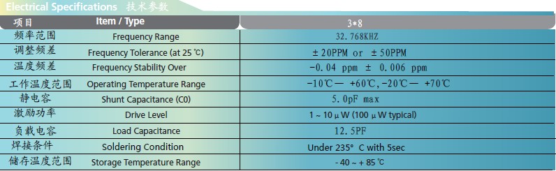 TH—3*8mm圓柱晶振規(guī)格