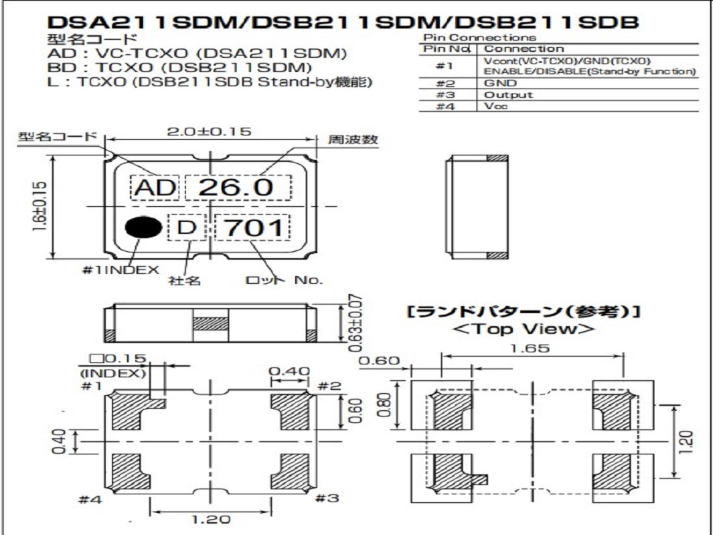 | KDS晶振 | 1XXD26000MAA | DSB211SDN | 2016 | 26.000MHZ | ||