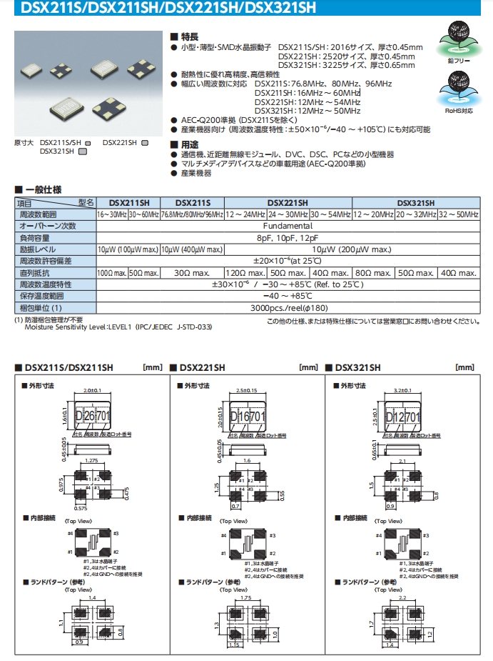 符合AEC-Q200標(biāo)準(zhǔn)(DSX211S除外)