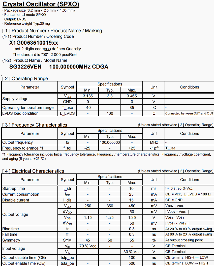| X1E0000210140 | 3.2 x 2.5 x 0.6mm | TSX-3225 | 25.000000 MHz | 16 pF | +/-10 ppm | -40 to +85 °C |