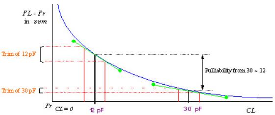 從圖中可以看出頻率和電容存在著很明顯的反比關(guān)系,也就是說當(dāng)負(fù)載變小時頻率變化在增大;當(dāng)負(fù)載增大時,頻率變化的幅度也在降低;這樣我們就可以總結(jié)出一系列的解決辦法,也就是如果頻率計數(shù)器測量的頻率高于目標(biāo)頻率,則應(yīng)增加電容值(CL或Cd和Cg)以降低頻率轉(zhuǎn)換為目標(biāo)頻率,反之亦然.