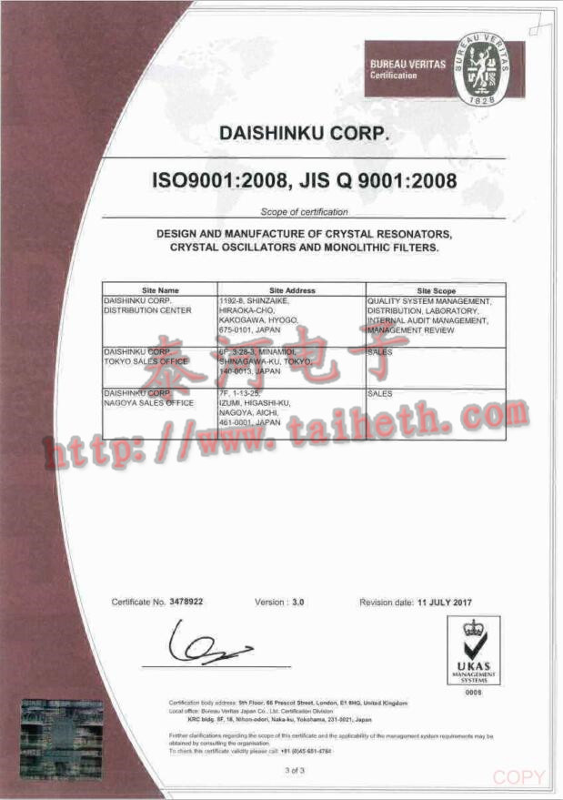 - [2019-08-14]臺(tái)灣希華晶體有限公司ISO9001認(rèn)...