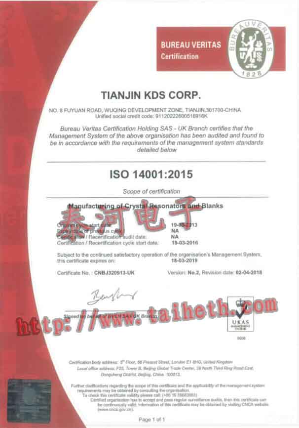 日本大真空晶振天津工廠自2013年3月9日獲得歐盟認(rèn)證ISO14001:2015認(rèn)證體系.保證所生產(chǎn)所有KDS石英晶振均符合國際ROHS標(biāo)準(zhǔn).
