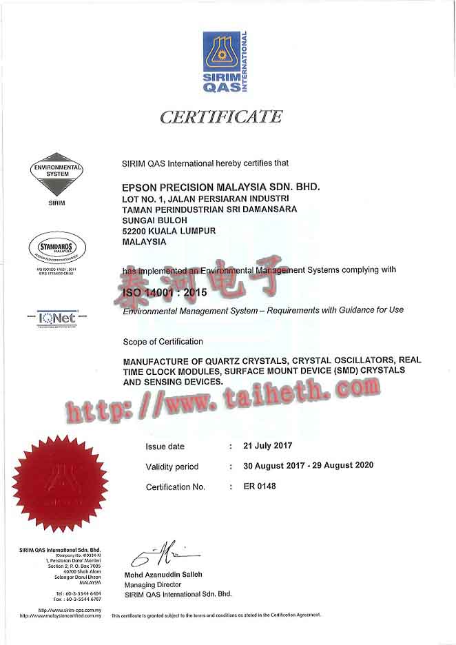 epson crystal馬來西亞ISO14001認(rèn)證