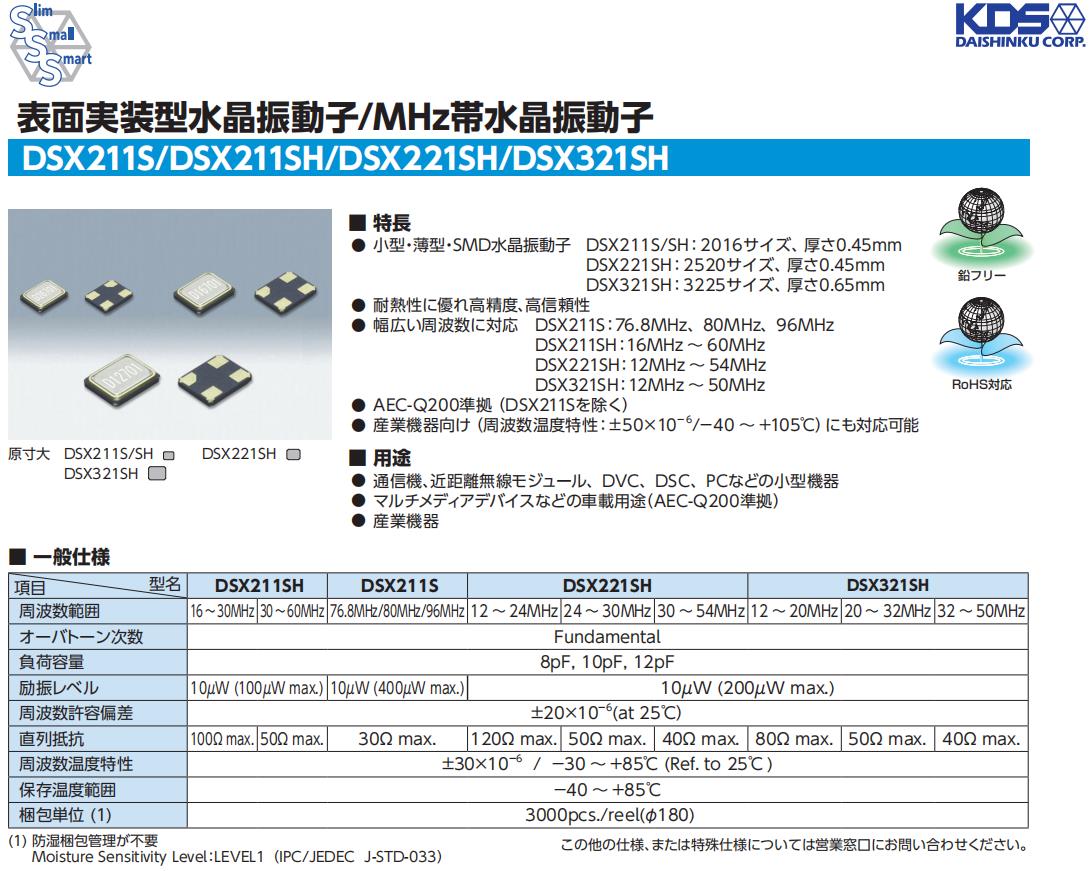 | KDS晶振 | ZC13727 | DSX221SH | 2520 | 24.000MHZ | 10PF | 30ppm |