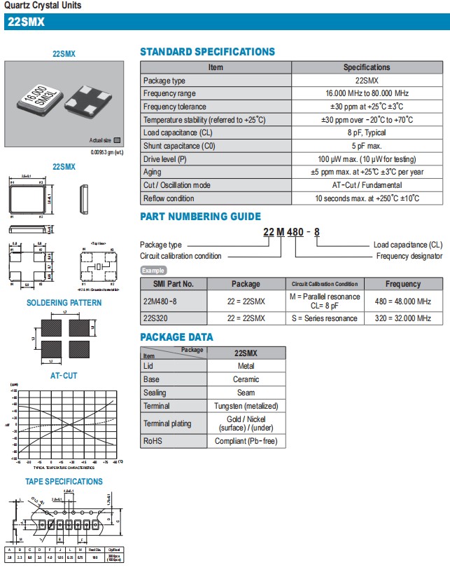 SMI|22SMX 42M|日本進(jìn)口晶振|6G通訊設(shè)備晶振
