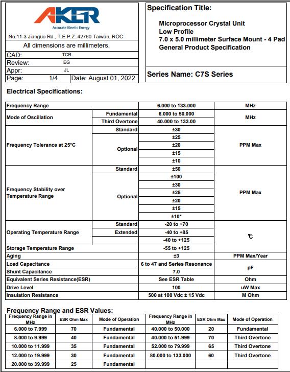 C7S-64.000-32-2030-3-X-R|64MHz|32pF|AKER品牌規(guī)格表