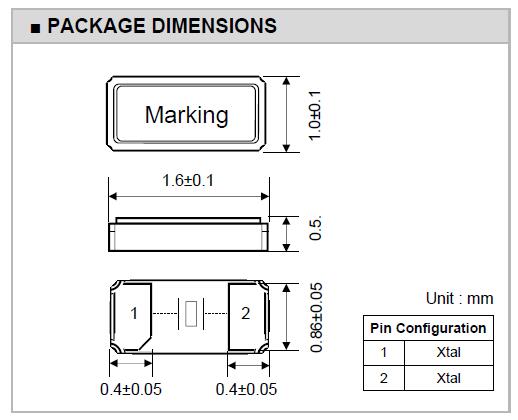 Transko晶振,特蘭斯科晶體,CS1610晶振,頻率32.768KHZ,封裝尺寸:1.6*1.0*0.5mm