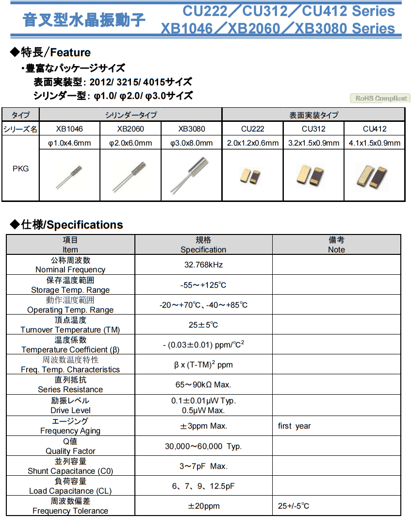 日本納卡6G路由器晶振,CU222 32.768KHz二腳晶振